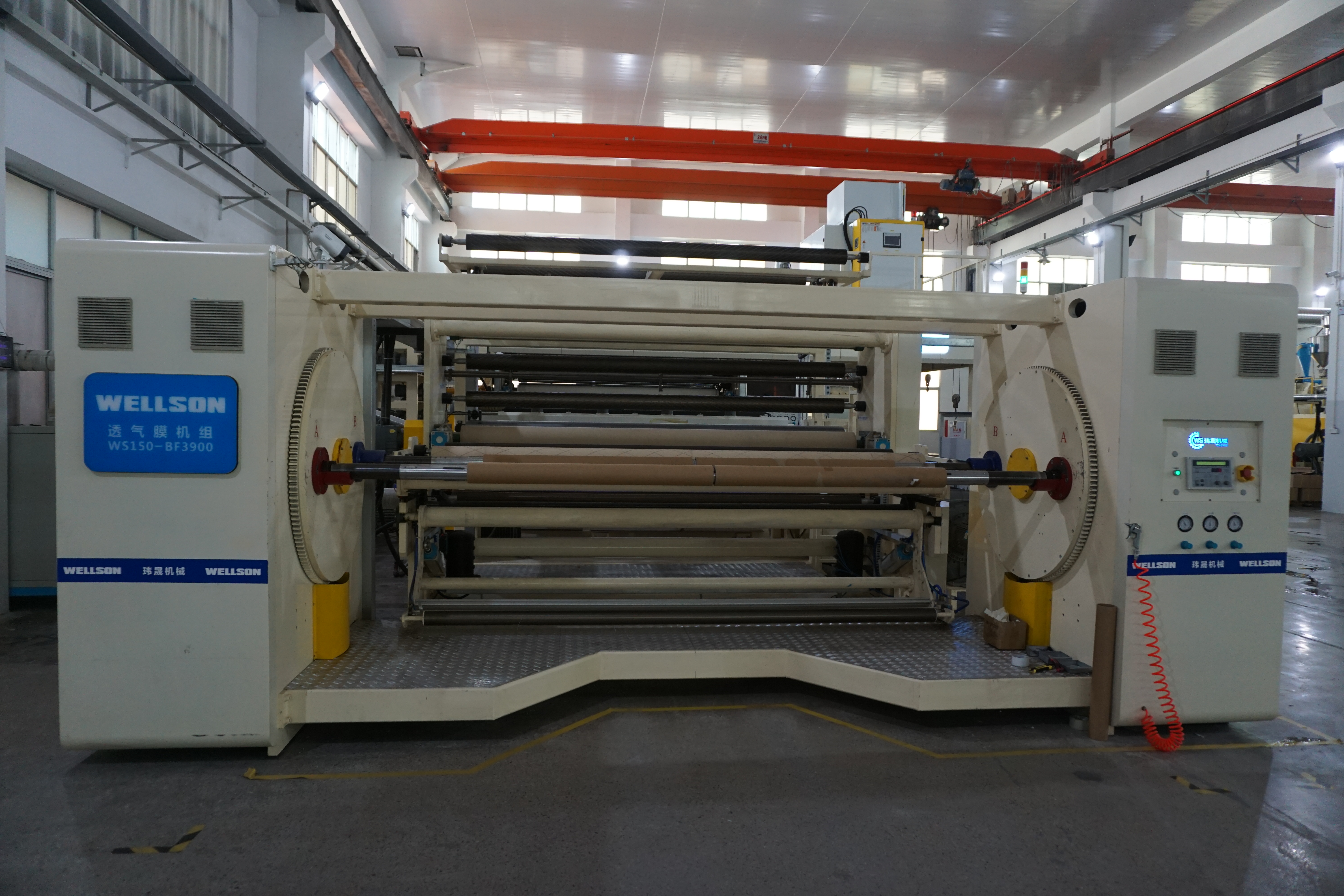 Wellson breathable film production line applies a special bimetallic screw extrusion control system. By optimizing the design of the flow channel, it can better improve the melt flow rate and the plasticizing effect of the raw material, and meet the special extrusion requirements of the resin raw material. By adopting the world-class pendant hanger-type runner design, the fully automatic die head and the high-precision automatic thickness detection and control system can more effectively track and control the horizontal and vertical thickness uniformity of the film, thereby ensuring its high quality. This is critical to ensure subsequent processing and problem-free stretching of the film.